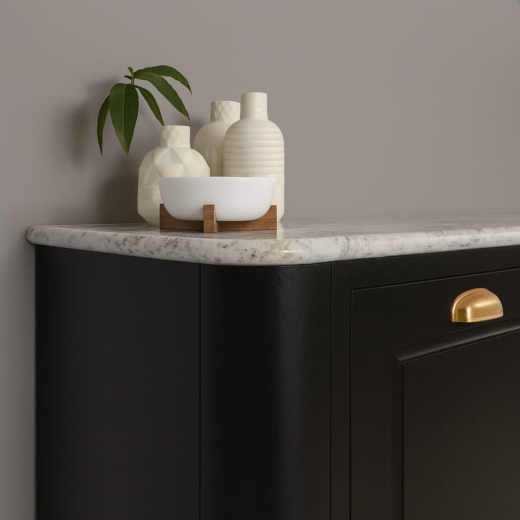 The Full Bullnose edge features a completely rounded finish, creating a smooth, soft curve on both sides of the worktop edge. This classic style offers a timeless, luxurious look and is particularly popular for traditional kitchens. Its rounded shape also makes it practical for safety and everyday use.