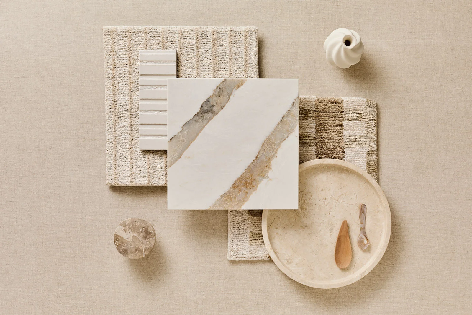 Featuring soft, flowing patterns in warm earth tones, Sahara Waves offers a stunning blend of beige, grey, and gold veining against an off-white background. The sweeping design evokes the natural beauty of desert sands, creating a serene luxurious feel. Ideal for both traditional and contemporary interiors, it adds an elegant touch to any kitchen or bathroom.